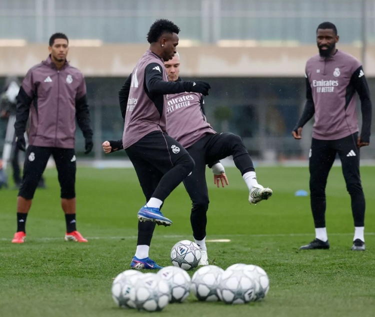 1月26日讯 北京时间1月29日凌晨4:00,欧冠联赛阶段第8轮,皇马将客战本菲卡。今日皇马进行了训练,备战本场比赛。在视频分析和健身房训练后,球员们来到草坪上进行传球、控球练习以及射门训练。最后,他们还进行了一场小场地对抗赛。吕迪格与球队一起训练了一部分时间,随后单独训练,姆巴佩和卡雷拉斯完成了中等强度的个人训练,米利唐在室内训练,而门迪则在室内外进行了个...